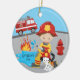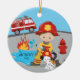 Cute Firefighter Brunette Boy Christmas Ceramic Tree Decoration