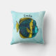Cute fish personalised kids pillow with a digital artwork depicting a cute tropical angelfish with long eyelashes in lovely blue and yellow colours. Great addition to a Under The Sea themed nursery room decor.