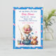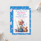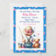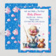 An adorable sweet little ai watercolor illustration of a baby girl in cute suspenders fishing with a teddy bear. The colours of this invitations include blue and pink.