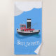 Cute fishing trawler boat cartoon illustration beach towel