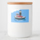Cute fishing trawler boat cartoon illustration food label
