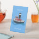 Cute fishing trawler boat cartoon illustration pedestal sign