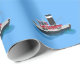 Cute fishing trawler boat cartoon illustration wrapping paper