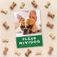 This cute, funny holiday photo card features a festive green background with a greeting that says "Fleas Navidog" in white and your photo. This is the perfect design for any dog owner! The backer features a fun green and white dot pattern pattern. To customise this design further, you could add another photo or additional text to the back.