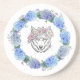 Cute Floral Blue Hydrangea Wolf Sandstone Coaster