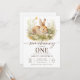 Cute Floral Bunny Girl First Birthday Party Invitation