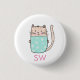 Cute cat illustrated button. Customise with your initials/monogram or your choice of text. Matching items available. Artwork from artists own illustrations. Please contact me for customisation and special requests. © Zoe Chapman Design