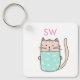 Cute cat illustrated keychain. Customise with your initials/monogram or your choice of text. Matching items available. Artwork from artists own illustrations. Please contact me for customisation and special requests. © Zoe Chapman Design