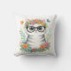 Cute Floral Cat with Glasses Cushion