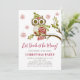 Cute and festive Christmas party invitation that features an adorable owl with a scarf and Santa hat. It also features a variety of whimsical flowers, snowflakes and stripes pattern. This invitation is available in a variety of colours.