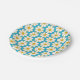 Cute Floral Daisy Pattern Mustard and Blue Paper Plate