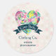 Cute Floral Heart on Pink Circles Business Classic Round Sticker