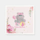 Cute floral hippo party napkins with mum to be info. Design has an adorable hippo holding a baby rattle and has a beach ball. The finishing touch for a great baby shower.