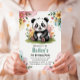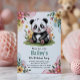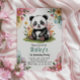 This kids floral panda birthday invitation design includes a pretty floral watercolor border. There is a cute panda bear in the centre who is sitting on a grassy patch. Underneath, there is a space to add your information in an easy-to-read yet decorative font. These fun yet pretty girls birthday party invitations also include pink writing.