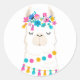 Cute Floral Llama Classic Round Sticker