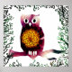 Cute owl art with floral elements, custom background color.