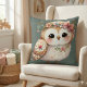 Cute Floral Owl with Bow Cushion