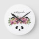 Cute Floral Panda Bear Kids Clock