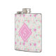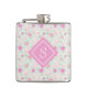 Cute Floral Pink Tea Cups Pattern Monogram Hip Flask