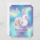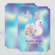 Cute Floral Swan Holographic Baby Shower Invitation