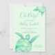 Cute floral turtle summer watercolor baby shower with green, turquoise and blue shades of colours.