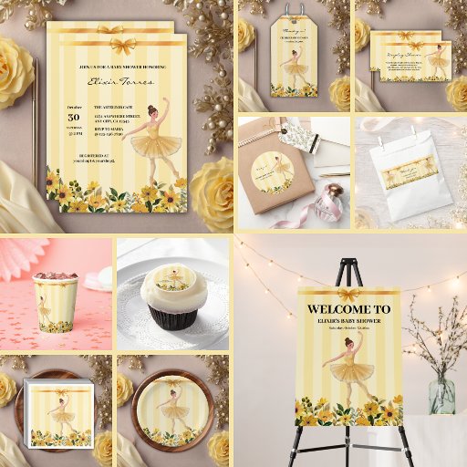The Cute Floral Yellow Ballerina Ribbon Baby Shower Collection combines the sweetness of ballet with cheerful floral designs and soft yellow tones. Adorned with delicate ribbons, charming tutu accents, and vibrant flowers, this collection creates a bright and joyful setting to celebrate the arrival of a baby girl. If you need any other matching product or customisation, kindly message via Zazzle.