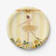 Cute Floral Yellow Ballerina Ribbon Baby Shower Paper Plate