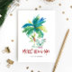 This beach theme watercolor Christmas card features a palm tree and Santa on the beach. The words Merry Beach-mas are set in a hand lettered typography. The inside is blank for you to add your personalised greeting. Order printed cards, bulk orders or a printable Christmas card. To see more tropical holiday cards like this visit www.zazzle.com/dotellabelle