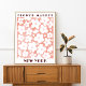 Flower market poster with editable name of the city and simple big white daisy blooms with pink centre on terracotta and pink for a trendy home decor