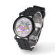 This watch has a cute vector design with a colourful Flower Power Owl. The colours are mainly pink, purple, green and hot pink. The clock numbers are a template object and can be removed easily. It is possible to add tekst such as a name or monogram. Also the background can be changed by using the edit / (advanced background function.