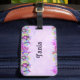 Cute flowers and butterflies on purple luggage tag