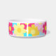 This is a heavy, durable bowl decorated with Tibbies of many colors, the perfect size for hungry/thirsty Tibs. The design is interesting and printing clear.