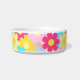 I love the pet bowls I bought for my 3 Granddogs when they come over my house. They are the perfect size to feed them when they are here for a visit. The design of their names on the bowls is great!