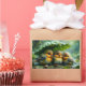 Cute fluffy birds in rain rectangular sticker