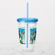 Cute Fluffy Black Kitten and Daisies Art Acrylic Tumbler