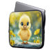 Cute fluffy chick with big eyes standing on a rock laptop sleeve