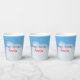 Fun kids party paper cups with fluffy clouds floating in a beautiful blue sky. Perfect for fun in the sun. Add your personal message to bring some added fun to the table. Perfect for kids parties.
