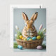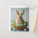 This super adorable postcard features the cutest little rabbit resting in an Easter basket filled with eggs. This holiday postcard would be ideal for friends, family and co-workers.