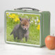 A little cute Red Fox kit puppy with fluffy fur. The Redfox is a true fox, also called Canis Vulpes, reynard or tod. A dinky wild animal baby portrait photo taken by Katho Menden, this metal lunch box is an enchanting gift idea for nature and animal lovers.
