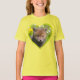 A little cute Red Fox kit puppy with fluffy fur. The Redfox is a true fox, also called Canis Vulpes, reynard or tod. A dinky wild animal baby portrait photo, heart shaped, taken by Katho Menden, this tshirt for young girls is an enchanting gift idea for nature and animal lovers.