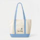 Love the durable cream colored canvas and navy blue contrasted handles. Perfect for carrying my laptop and papers.