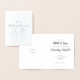 Simple and cute silver foil wedding invitation. Featuring doodle art style wedding icon illustrations on the front and back in foil. Inside features a love quote and invitation details in black ink.