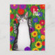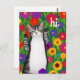 Cute Folk Art Cat saying Hi among Flowers Postcard