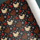 Add a touch of charm to your gifts with our unique Christmas wrapping paper! This festive wrapping paper brings rustic warmth to the holiday season, featuring a pattern of brown and white chickens on a black background.