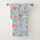 Cute Folk Floral Heart Dusty Blue Blush Pink Girl Bath Towel Set