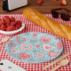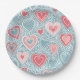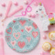 Cute Folk Floral Heart Dusty Blue Blush Pink Girl Paper Plate