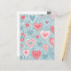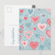 Cute Folk Floral Heart Dusty Blue Pink Baby Shower Postcard