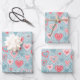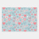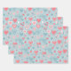 Cute Folk Floral Heart Dusty Blue Pink Baby Shower Wrapping Paper Sheet