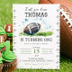 First year down! Celebrate your baby boy’s big day with this editable football first birthday invitation. Featuring a watercolor football and playful phrase "First year down", this sports themed invite is perfect for a rookie of the year party, football birthday, or boy’s 1st birthday celebration.