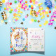 Cute Forest Animals Rabbits Twisting 1st Birthday Rainbow Polka Dot Pattern Party Invitation.